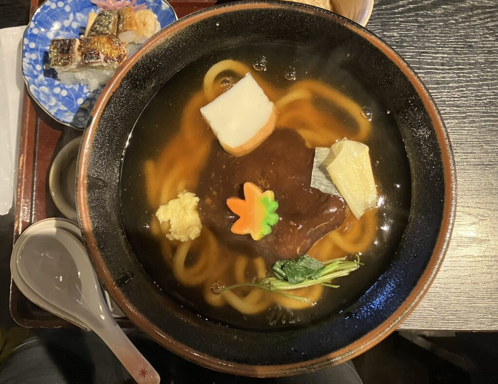大通寺から、黒壁スクエアに戻り、昼食となりました。昼食は黒壁スクエア内や近隣に多数の飲食店がありますので各自自由としましたが、長浜のご当地グルメ「茂美志や(もみじや)」の「のっぺいうどん」、「翼果桜(よかろう)」の「焼鯖そうめん」などを皆さん堪能されたようです。