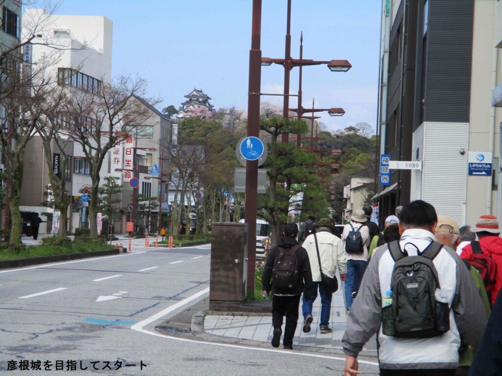 4月度の歩こう会は「9年ぶりの彦根城」と題し、滋賀県彦根市の国宝彦根城とその周辺を散策しました。開催日は4月2日、参加者は19名でした。