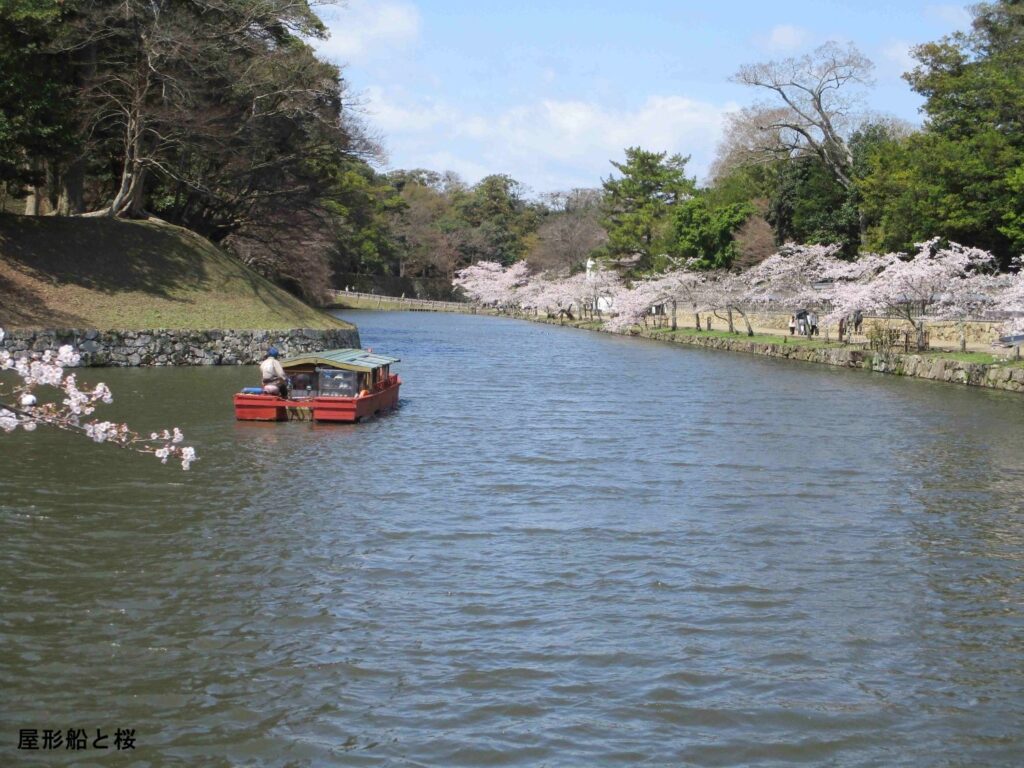 彦根駅前にある井伊直政の銅像を眺め、遠くに見える彦根城へと歩きましたが、お城を巡るお堀沿いに植えられた桜もすでに満開でした。